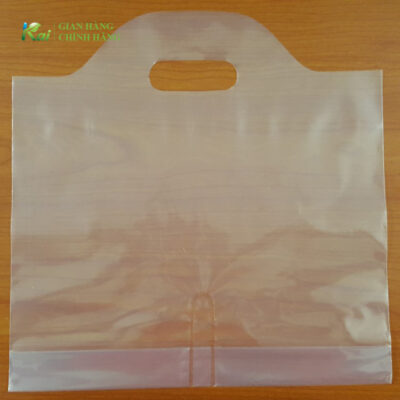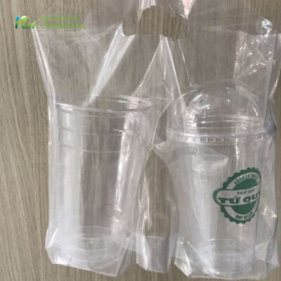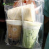 Túi đơn đựng được 2 ly mang đi, làm từ ni lông PE trong suốt, xếp đáy và có vách ngăn